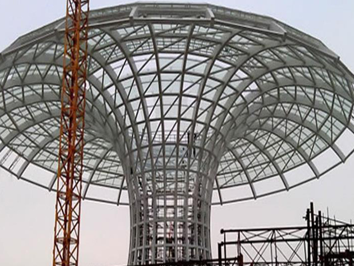 二、球形网架结构因其结构新颖,受力合理,自重轻、用钢量低等优点。如大型体育场馆球形冀州螺栓球网架、公共场馆球形网架、电厂冀州螺栓球网架、水泥工业球形网架、仓储物流球形网架、冀州干煤棚工业球形网架、冀州收费站冀州加油站球形网架、展览中心、影剧院、商场、航站楼、候车厅、工厂冀州车间、仓库、电视塔等球形螺栓球节点网架。国内球形网架结构主要分为:冀州焊接球节点网架及螺栓球节点网架两种。螺栓球节点网架其构件工厂内加工量较大,现场安装便捷,适用于现场工期紧,冀州施工条件、用电量受制约,网架形状复杂、冀州杆件定位困难的异形结构。螺栓球节点球形网架系统基本由冀州杆件、螺栓球、支撑支座等组成。按照节点形式可分为交叉冀州桁架体系、四角锥体系、三角锥体系等。支撑方式多为固定支座支撑。对于大面积、大跨度及有特殊受力或伸缩要求的网架结构可采用橡胶支座、滑移支座、球铰支座等支撑形式,以满足结构自身的受力稳定、均衡,便于内力释放等设计要求。